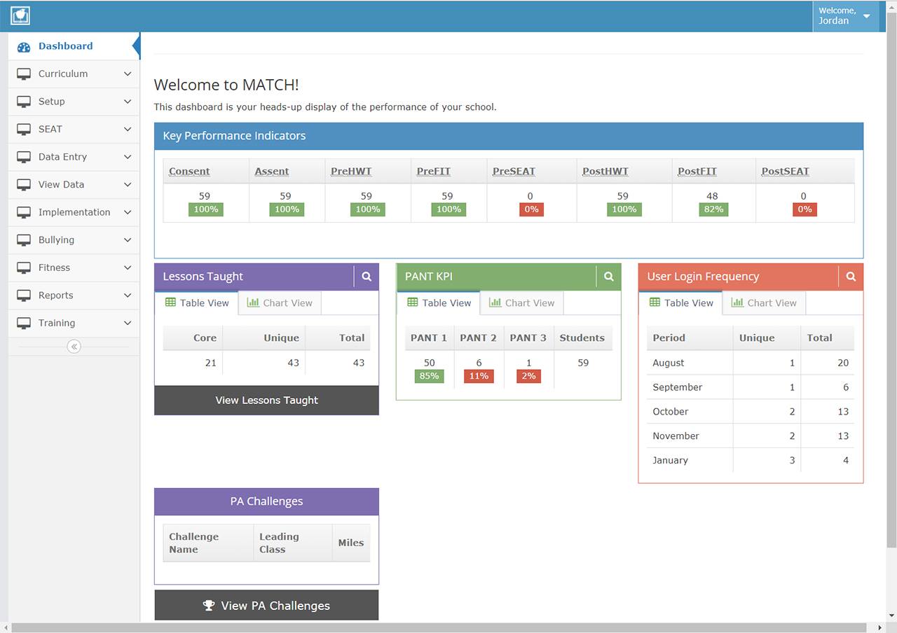 MATCH puts a data warehouse at the fingertips of administrators for real-time reporting of BMI Status, Fitness, Bullying and Health Behavior analysis.